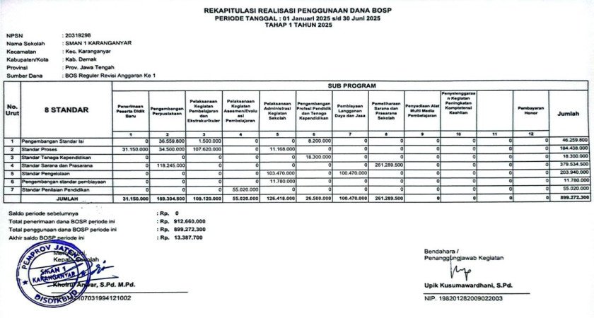 Rekapitulasi Realisasi Penggunaan Dana BOSKIN Tahun 2025 SMA Negeri 1 Kanganyar Demak https://drive.google.com/file/d/1sSrg9JuTNQDj1Xiom6AQuSvd7GIwFMtp/view?usp=sharing